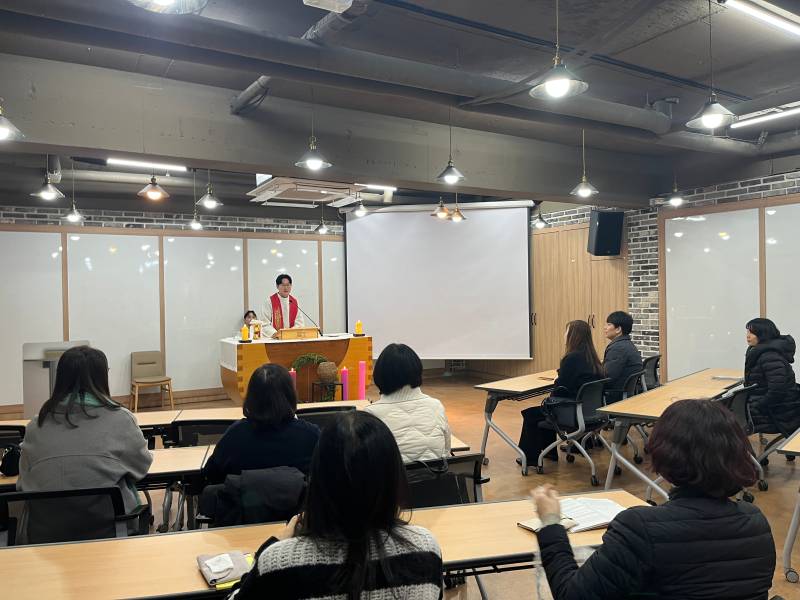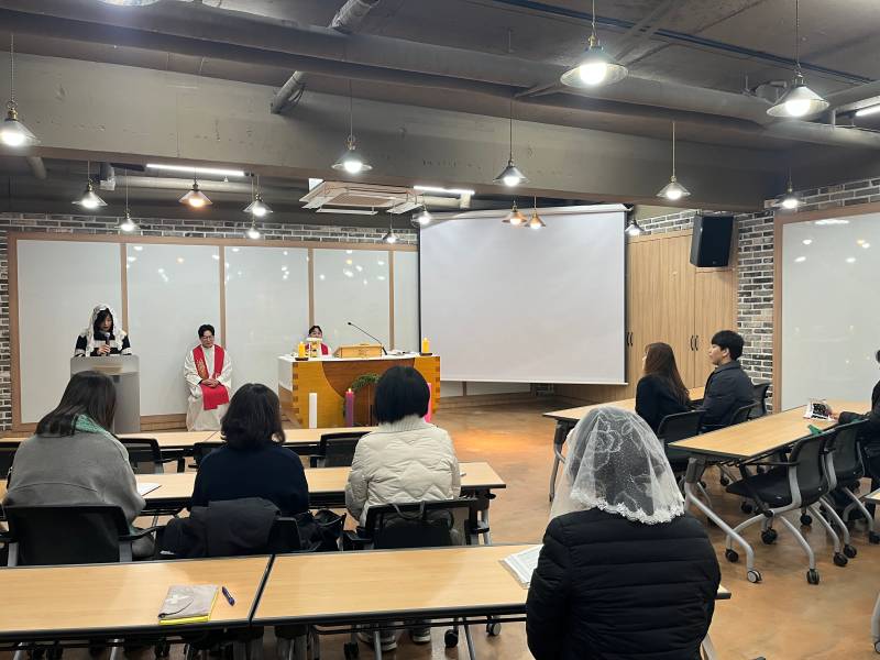 하품센터에서 자녀들을 위해 기도하는 학부모 월례미사를 했습니다.