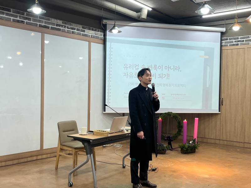 "허권범 프란치스코" 신부님께서 '유리잔 속 벼룩과 자유로운 나비'라는 주제로 특강을 해주셨습니다.