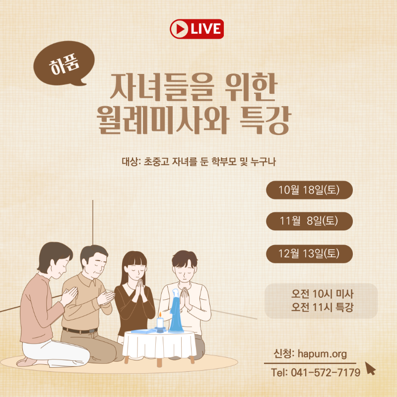 [신청 모집] 자녀들을 위한 월례미사&특강